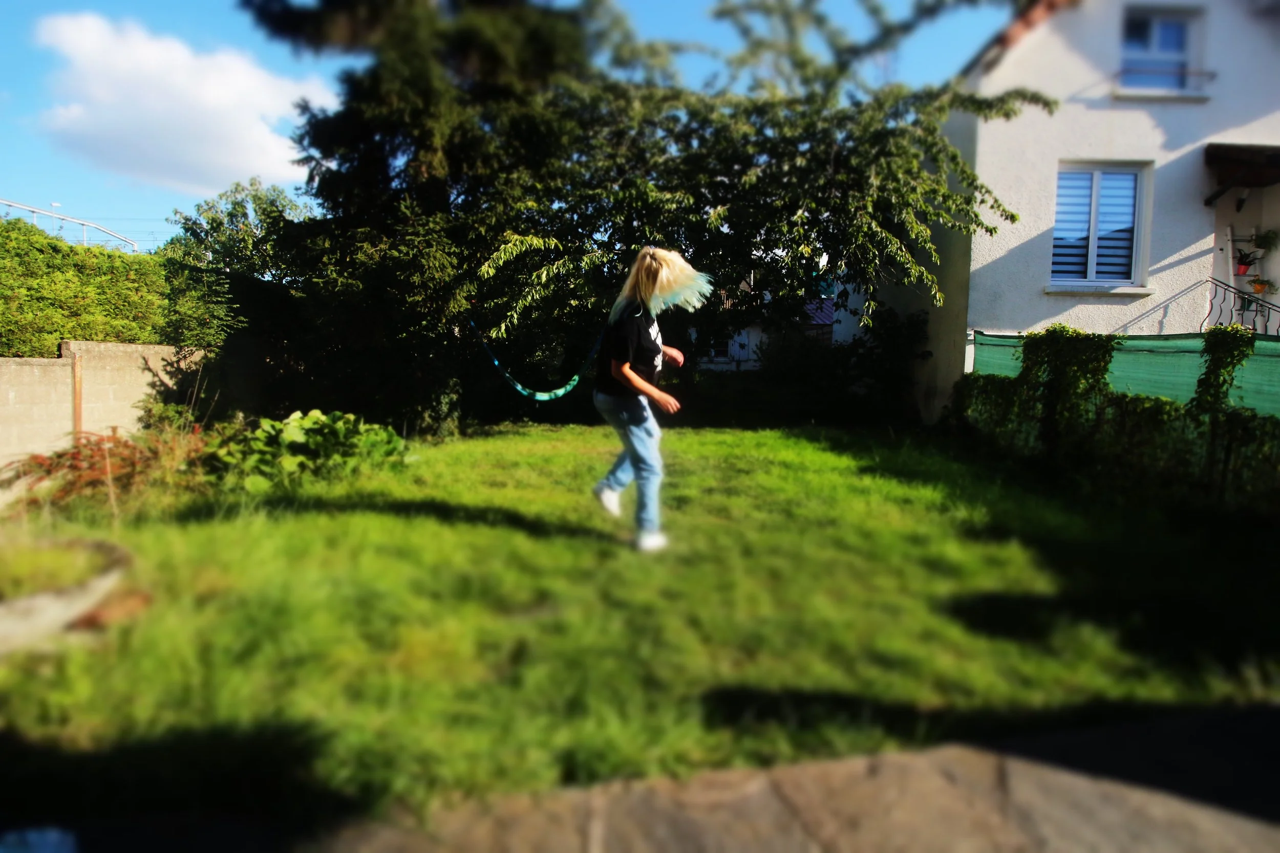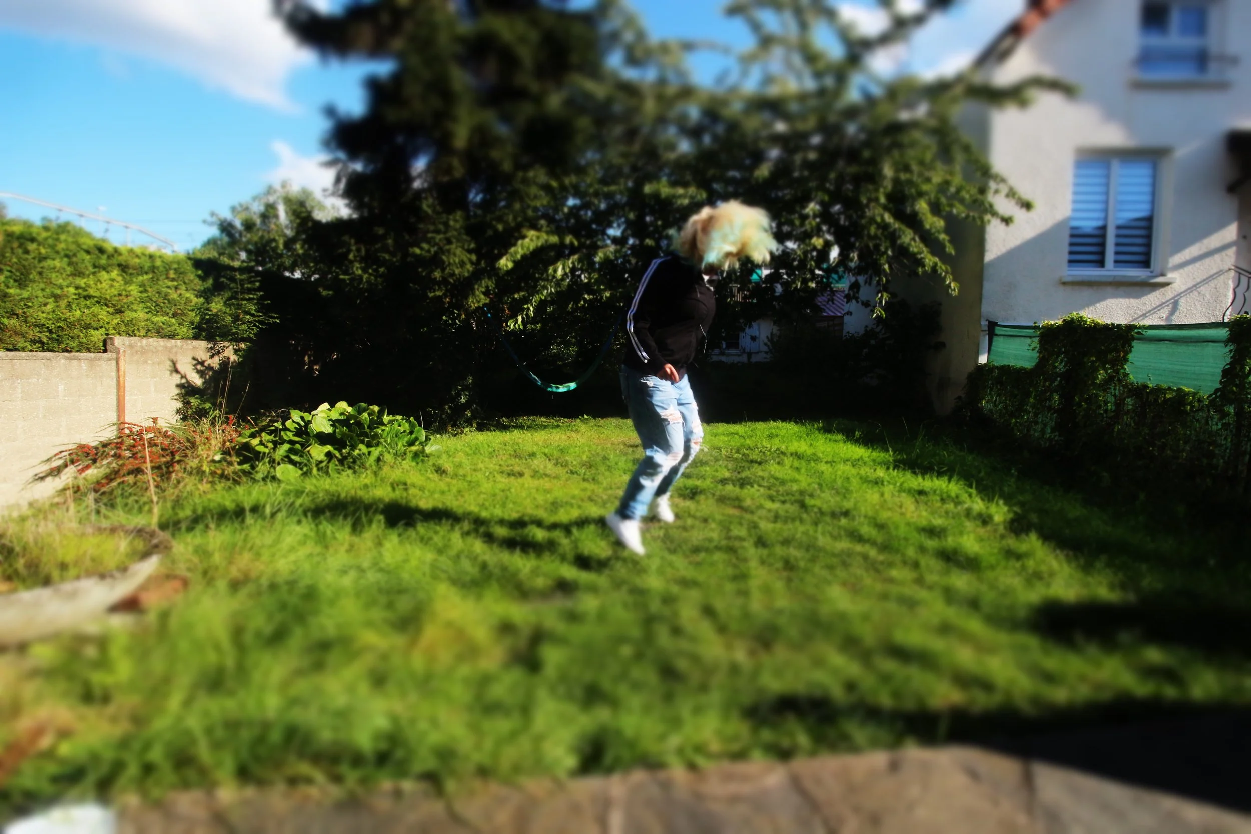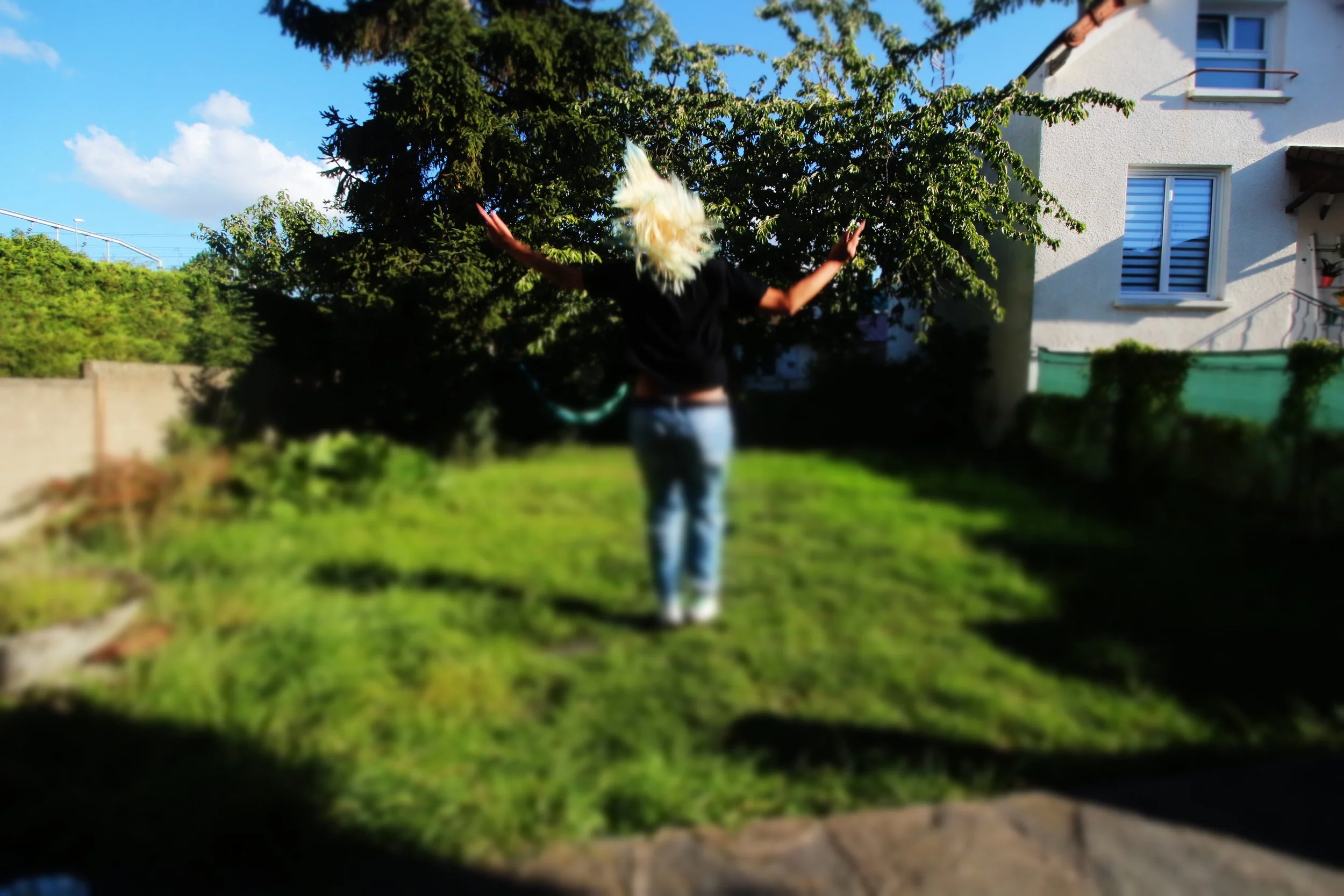 Stuck in the same bubble. I jump, higher each time, but the ground always takes me back. The yard pretends to be open, but it’s just another box. No freedom, only the same fall, over and over. This repetition that annoys me but I’m forced to face it.