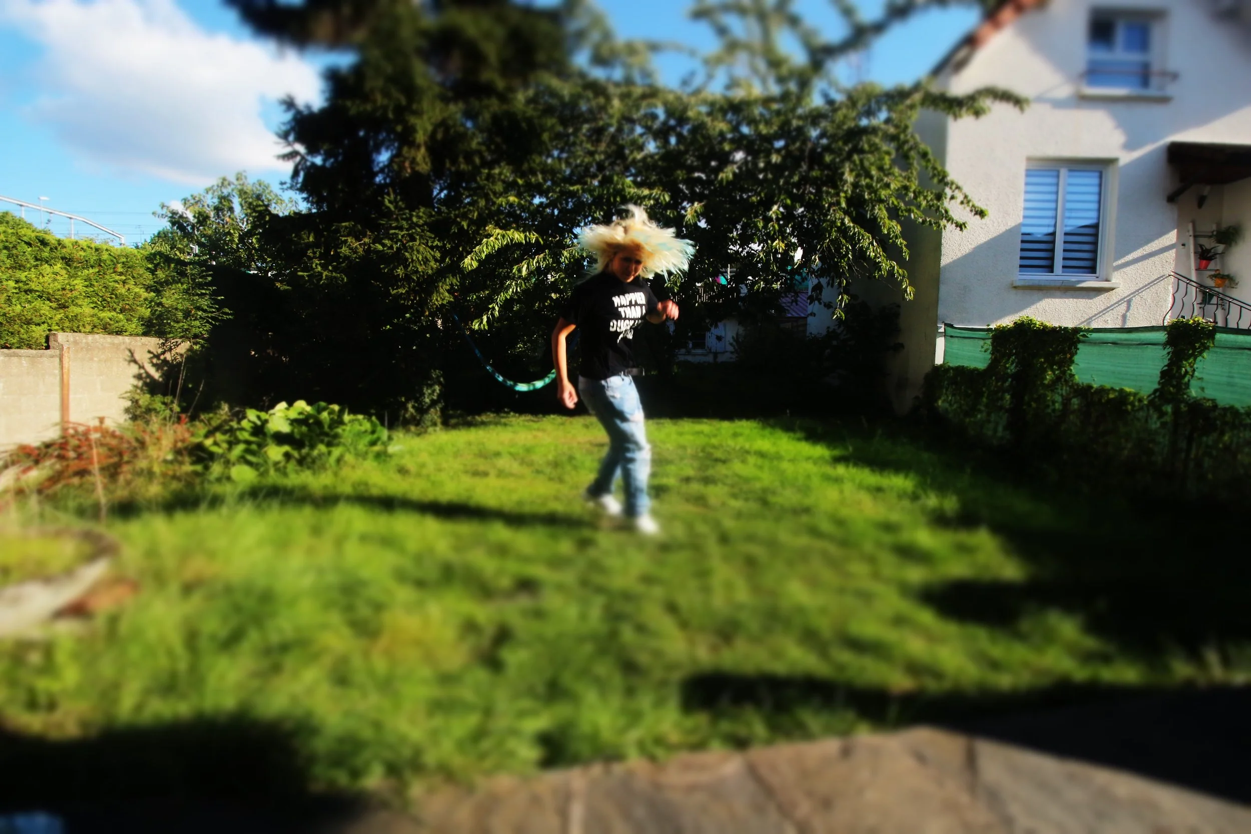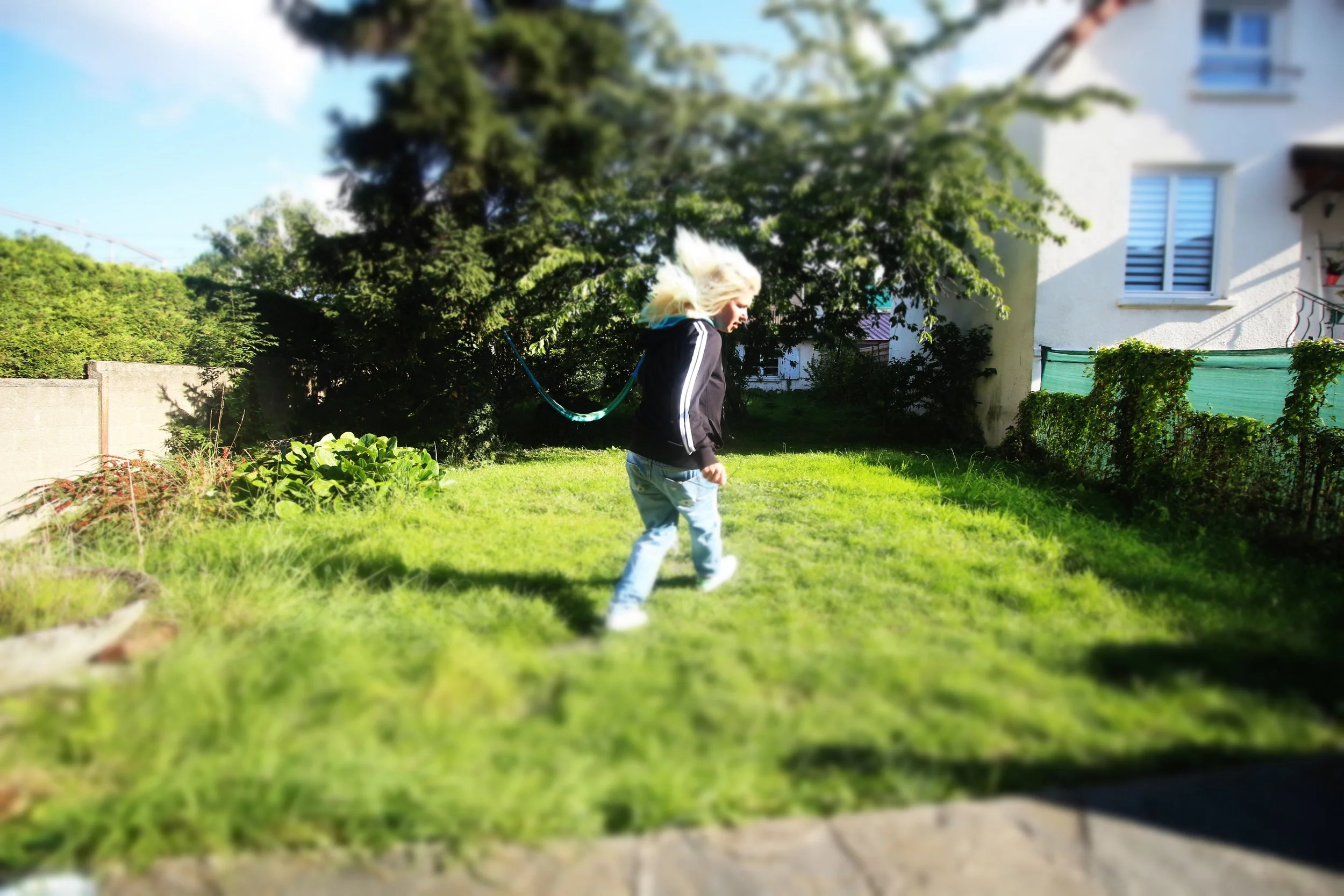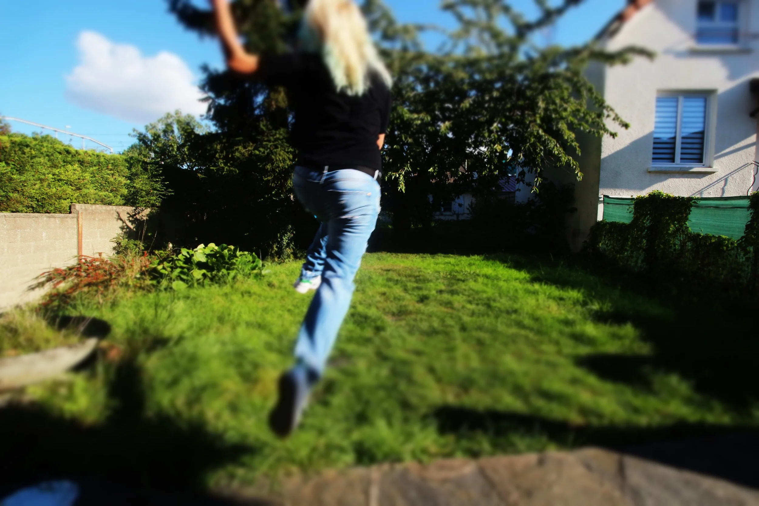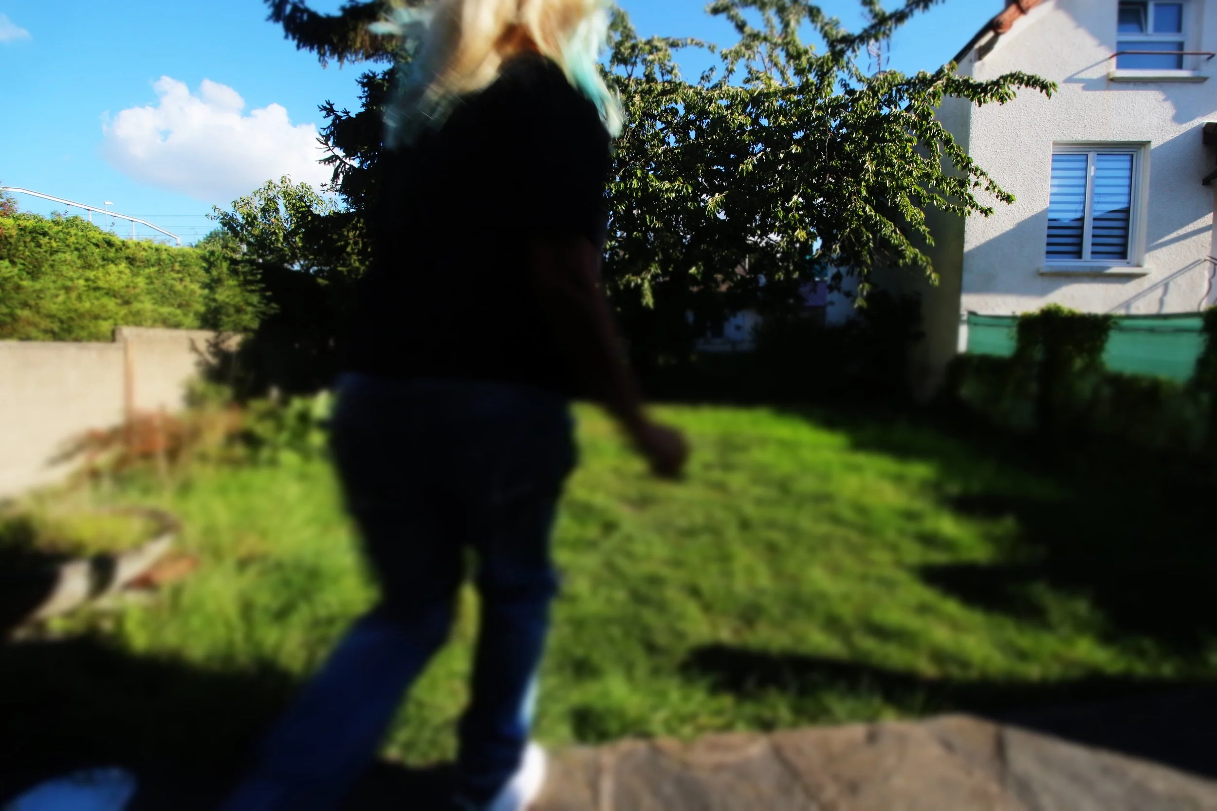 Stuck in the same bubble. I jump, higher each time, but the ground always takes me back. The yard pretends to be open, but it’s just another box. No freedom, only the same fall, over and over. This repetition that annoys me but I’m forced to face it.